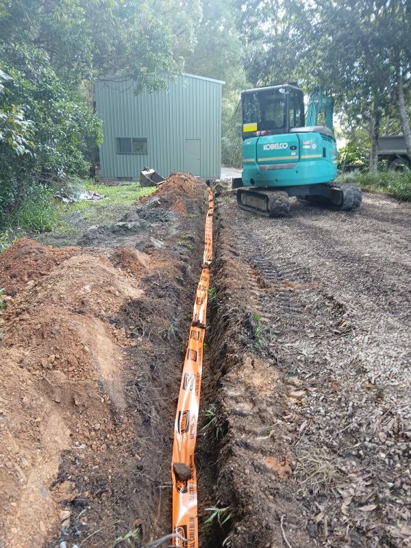 Running underground sub-mains involves the installation of mechanically protected cabling through conduit, which must be trenched at the correct depth and backfilled appropriately. On rural properties, this often necessitates collaboration with an earthworks contractor for the trenching process to ensure safety and compliance with regulations. The electrical connections at both ends, including those at the main switchboard and the shed sub-board, must be executed by licensed electrical professionals. We manage the entire process, overseeing earthworks, so you only need to communicate with one point of contact instead of juggling multiple trades, making the project more streamlined and efficient for you.
