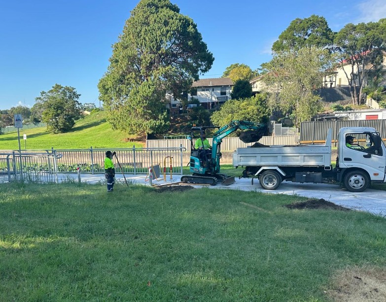 Preparing the site required meticulous attention to detail, including the consideration of existing path infrastructure and the need to navigate around various utilities. To ensure optimal planting depth and profile, we utilised a mini excavator to carefully excavate the tree pits. Following this, we placed each tree, backfilled the holes, secured them with sturdy stakes, and applied a generous layer of mulch. This mulch serves to retain moisture and suppress competing weeds, allowing the trees to establish themselves effectively, ultimately setting the stage for a vibrant landscape that benefits the entire community.