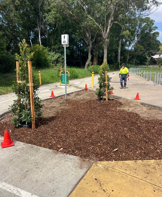 The site runs alongside an essential stormwater channel within a well-established residential area, with the pathway closely following its course. The scope of this substantial undertaking necessitated planting a continuous and lush row of trees along the entire length of the corridor. Each tree was scrupulously staked, protected, and mulched to ensure its well-being. This careful approach aimed to equip the trees with the best possible start for thriving growth in their new environment, promoting long-term sustainability and ecological harmony.